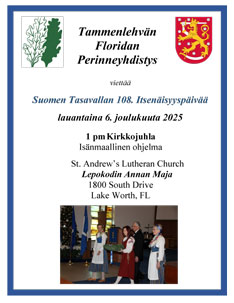 KAUDEN AJAN VIIKOTTAISET TAPAHTUMAT, FLORIDAN SUOMALAISALUE |