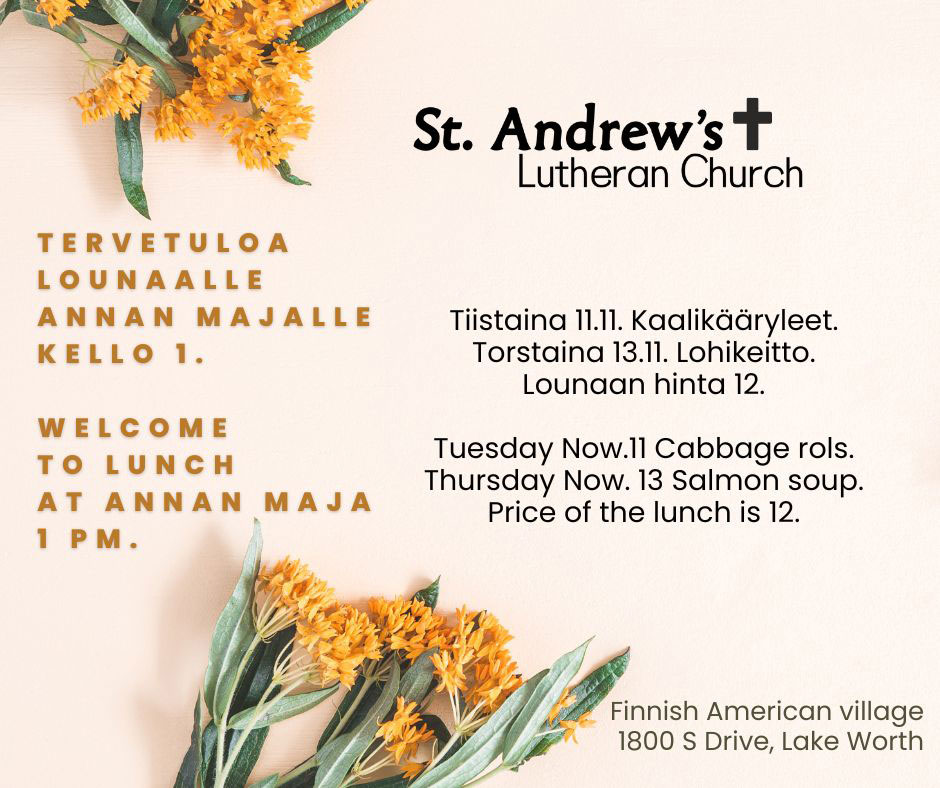 Klikkaa ja lue St. Andrewin Luterilaisen seurakunnan uutisia Lake Worthista Floridasta...