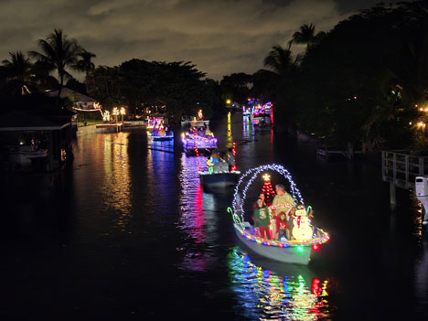 Ennen joulua Floridassa pidetään myös veneparaateja, joissa valoilla koristellut veneet lipuvat pitkin kanavia ja pikku järviä.