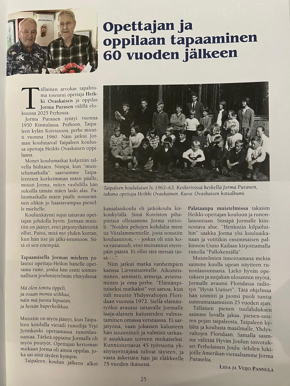 Klikkaa kuvaa ja lue mukava juttu 1972 Floridaan muuttaneen Jorma Purasen kouluvuosista ja muistelumatkasta Suomeen.