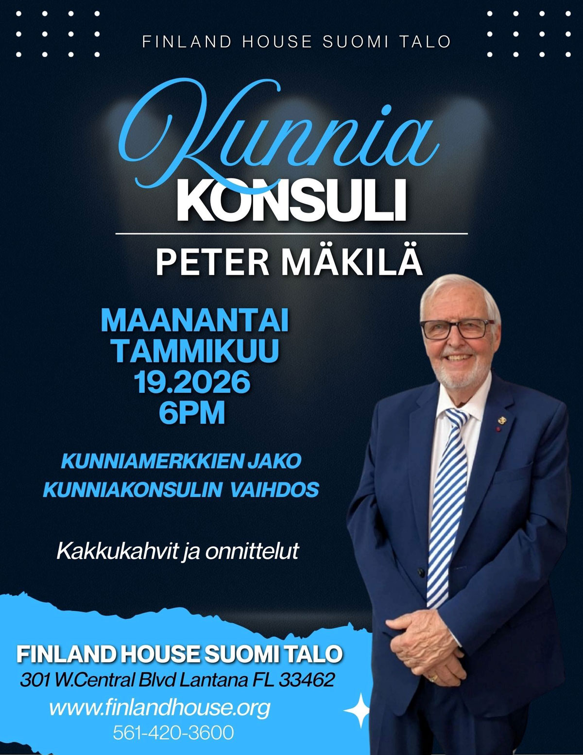 Joulurauha julistettiin myös Floridassa. Ohjelmassa oli mukana Cynthia Makris ja Floridan Laulajat. Joulurauhan julisti kunniakonsuli Peter Makila ja rukouksen luki pastori Sami Ettanen