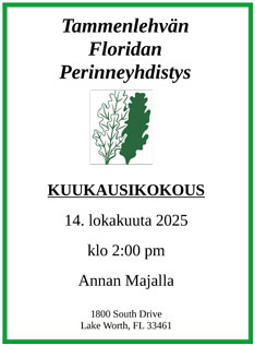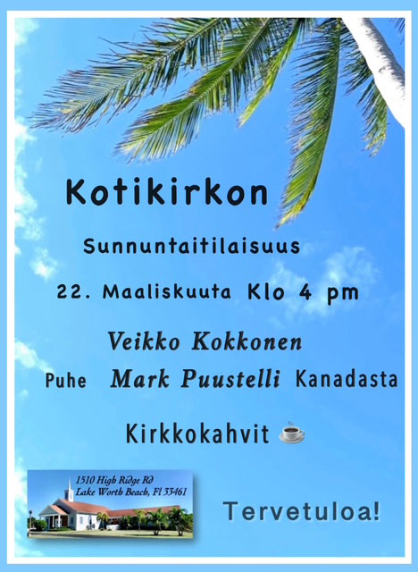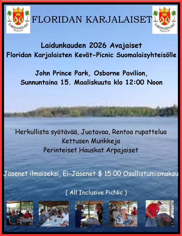 KAUDEN AJAN VIIKOTTAISET TAPAHTUMAT, FLORIDAN SUOMALAISALUE