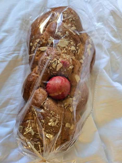 Tavallisestikin pullaa on toki myynnissä, mutta pääsiäisen aikaan niissäkin saattaa olla punainen muna koristeena.