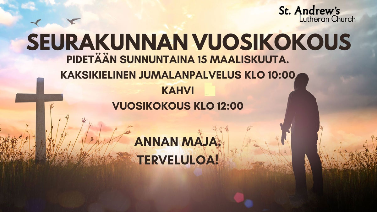 On behalf of the church council of St. Andrews Lutheran Church, we wish to inform you that our pastor and his wife, Sami and Tarja Ettanen, must return to Finland for an unknown period of time due to personal circumstances.