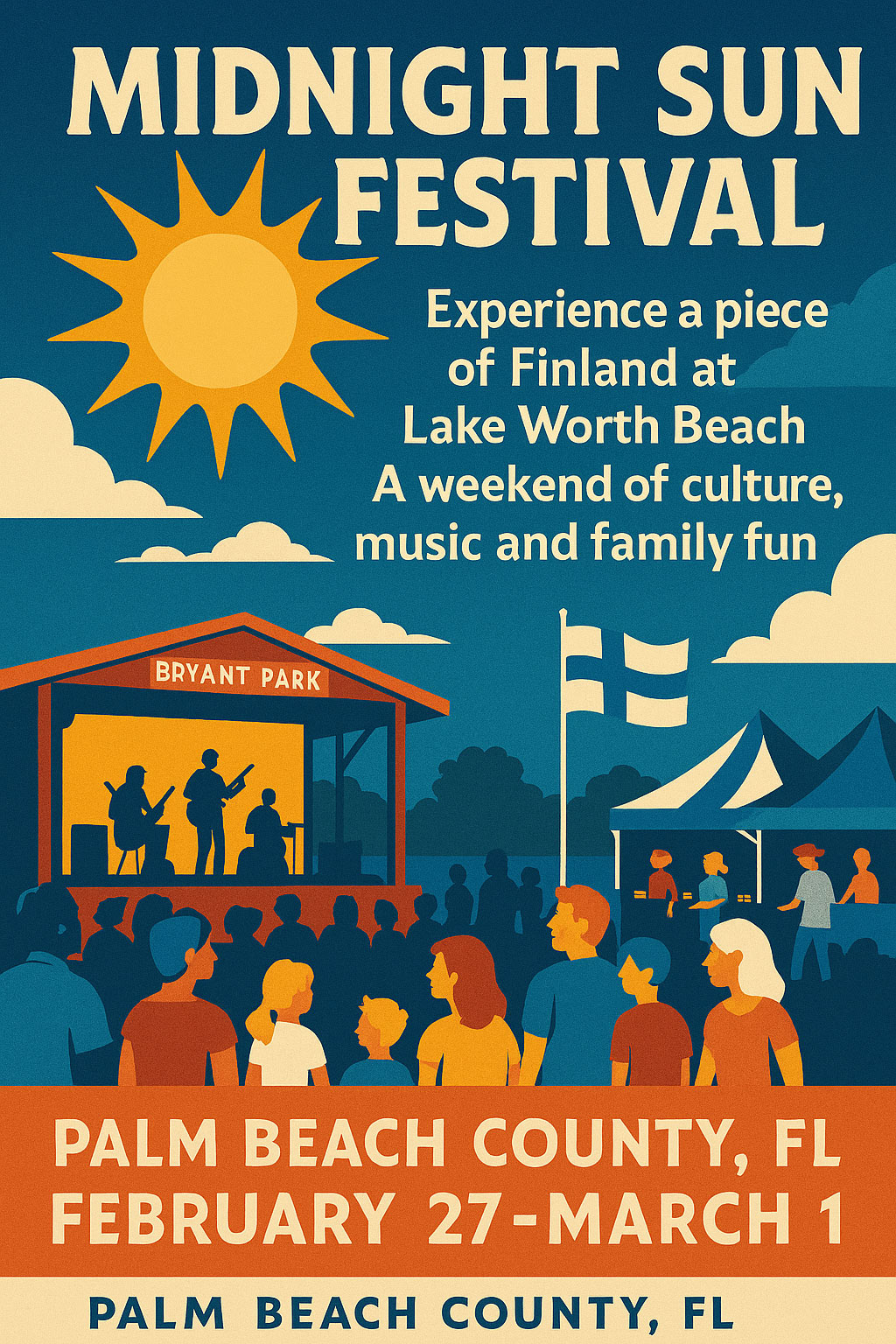 Midnight Sun Festival on ollut osa Palm Beach Countyn kulttuurikalenteria jo yli neljä vuosikymmentä. Se juhlistaa suomalais-amerikkalaisen yhteisön juuria ja tuo Suomea lähemmäs Floridan asukkaita ja matkailijoita.