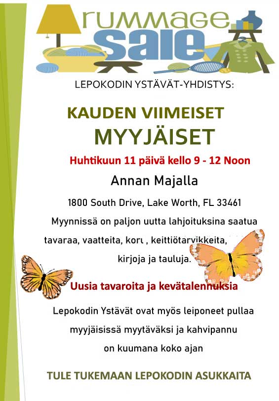 Lepokodin Ystävien kauden viimeiset myyjäiset Annan Majalla Paikka: Annan Maja