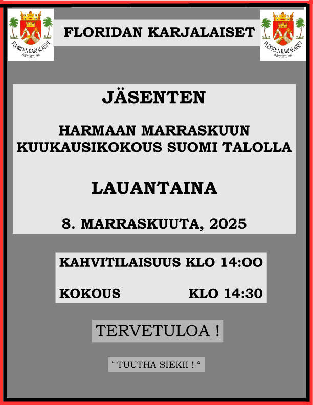 Suomalaisyhdistysten toiminta on hiipunut Floridan suomalaisalueella, uusia voimia tarvitaan toimintaan. Nyt Floridan Karjalaisten tulevaisuus on tietoisesti asetettu vaakalaudalle - puheenjohtaja pyrkii herättelemään jäseniä toimintaan avoimella kirjeellään.