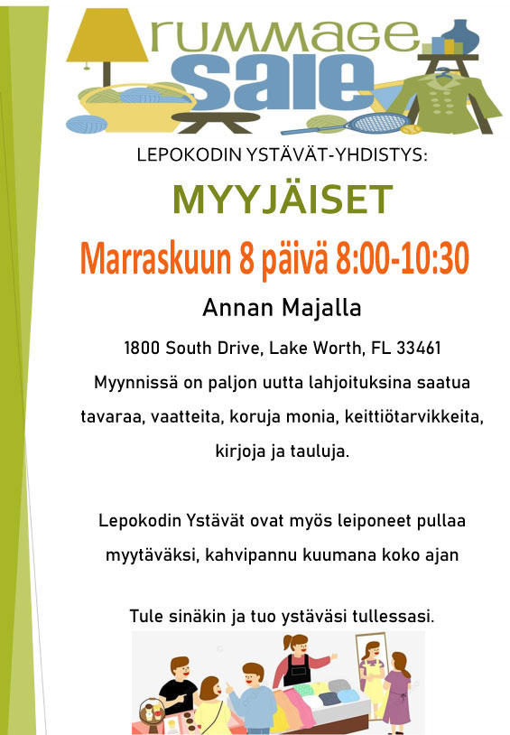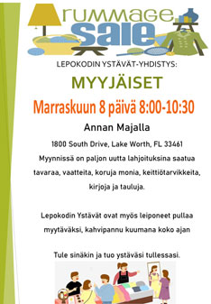 Etelä-Floridan suomalaisalue elää murrosta. Meillä on yhä kuoroja, Karjalan liekin ylläpitäjiä ja veteraanien muistoa vaalitaan. Lepokodin ystävät ja muut pitkäikäiset yhdistykset jatkavat arvokasta työtään - mutta yhä harvenevin voimin.
