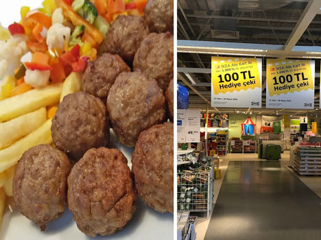 Perinteiset IKEAn lihapullat valmistetaan puoliksi sian- ja puoliksi naudanlihasta, mutta henkilökohtaisen tarkastuksen jälkeen todettiin, että sianlihaa syömättömässä Turkissa valmiina tai pakasteena tarjottuihin lihapulliin on käytetty vain naudanlihaa.