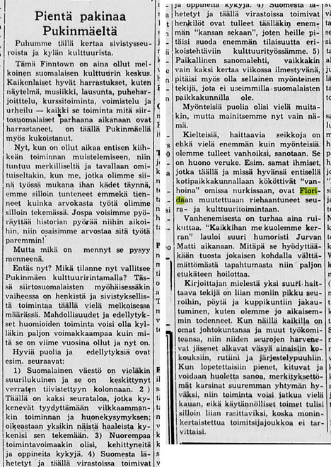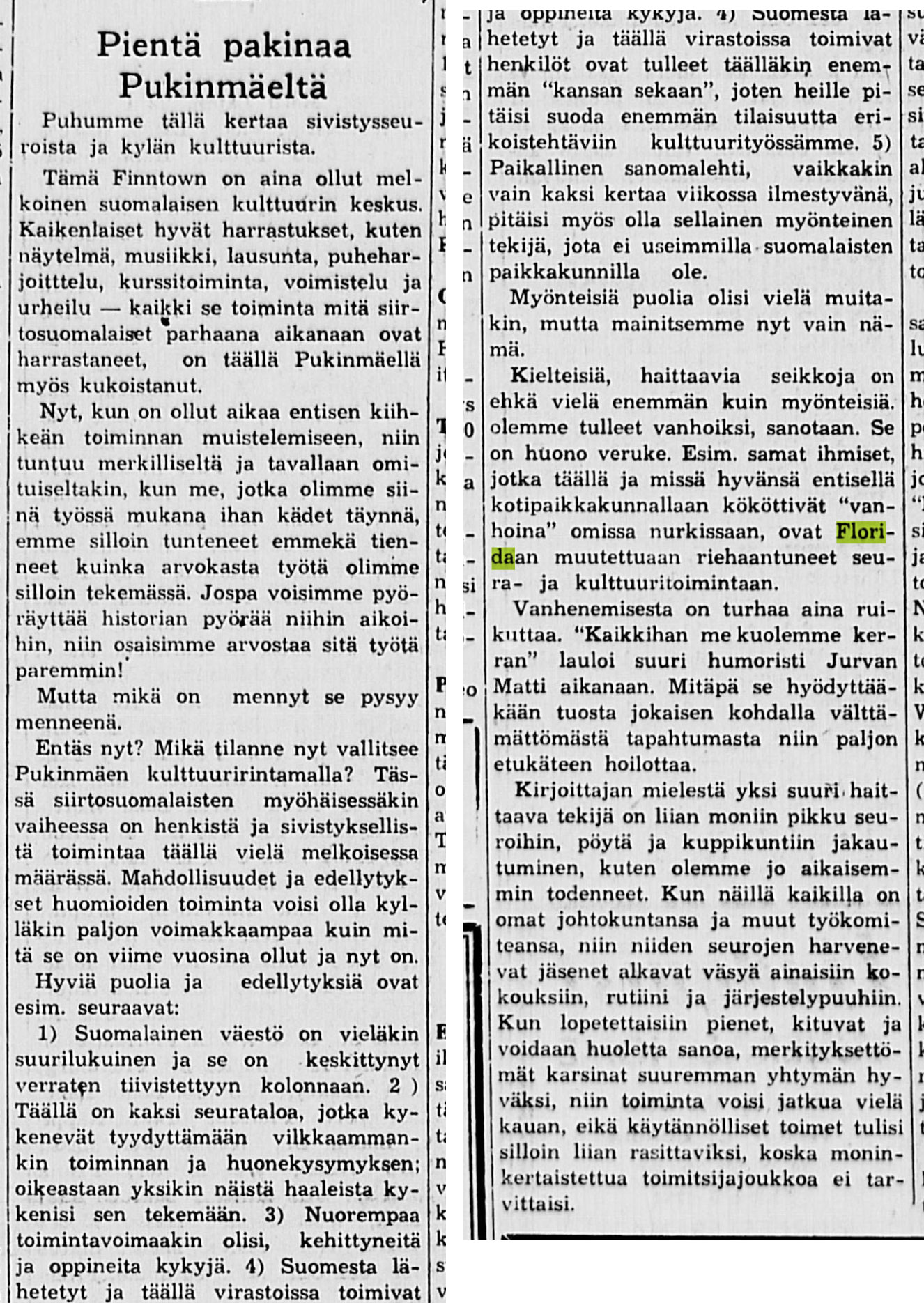 Näin kirjoitettiin Raivaajassa 67 vuotta sitten suomalaisyhteisön asioista. Mikään ei siis ole muuttunut.