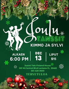 Jotenkin pohjoismaiset tapahtumat osuivat Floridan suomalaisalueella samalle viikonlopulle. Suomi Talolla juhli Ruotsalais-Amerikkalainen kauppakamari joulujuhliaan, lepokodin Annan Majalla pidettiin koko viikon lopun ajan skandinaavisia joulumarkkinoita.