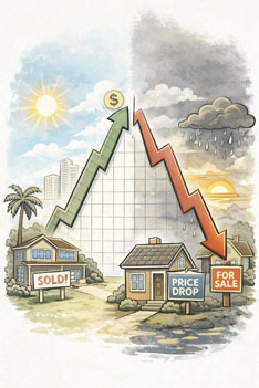 Asiantuntijoiden mukaan kyse ei ole romahduksesta vaan markkinoiden tasaantumisesta pitkän nousujakson jälkeen. Korkeammat korot ja heikentynyt ostovoima hillitsevät kysyntää, mutta Floridan jatkuva muuttovoitto ja vahva vetovoima tukevat asuntojen hintoja myös tulevina vuosina.